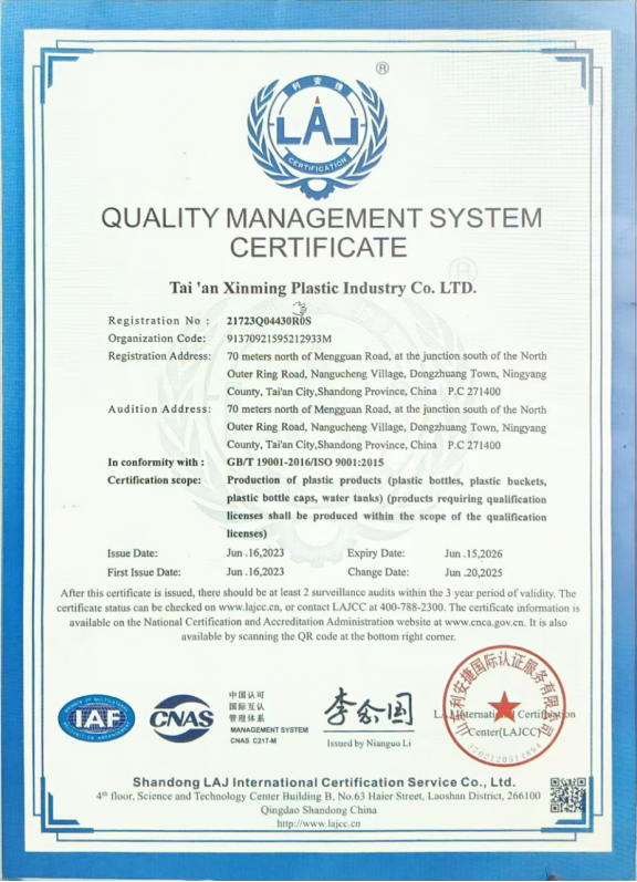 Taian Xinming Plastic Industry Co., Ltd. adheres to the core philosophy of "Making Good Bottles with Heart, Greeting the Future through Innovation," deeply rooted in China and radiating throughout the world. The company has modern production bases in Tai'an and Jinan, leveraging their locational and production capacity advantages to continuously provide safe, reliable, and innovative packaging solutions for industries such as pesticides, liquid fertilizers, and specialty chemicals.