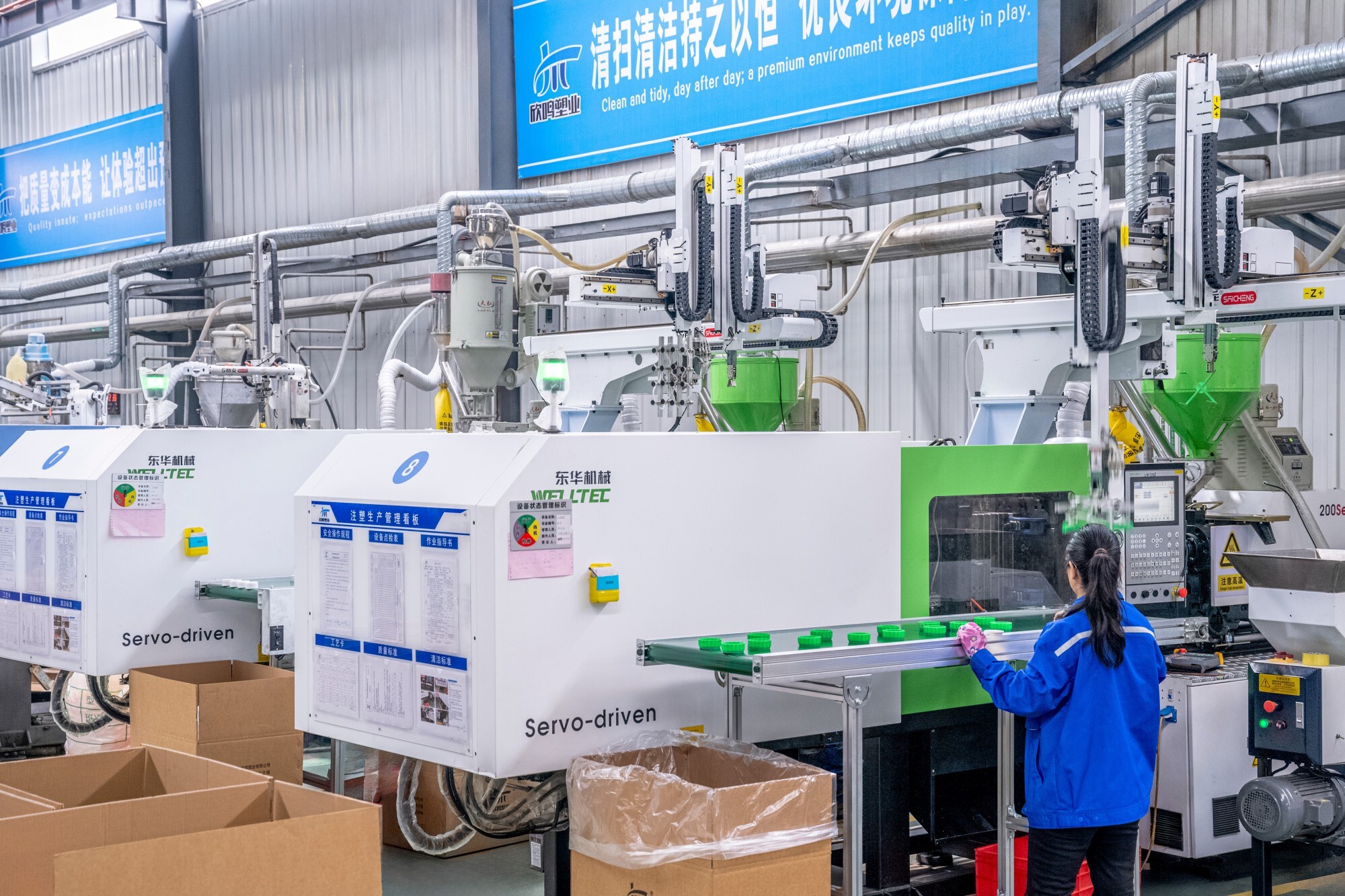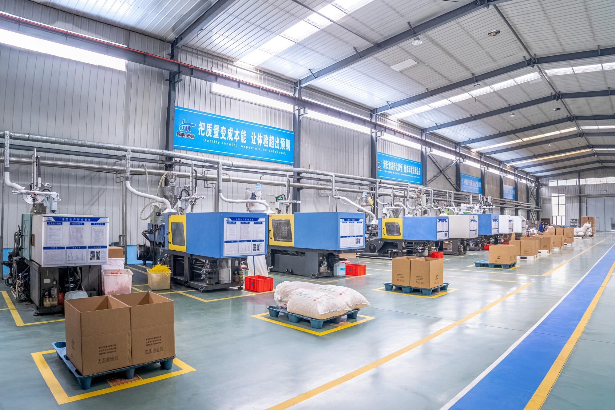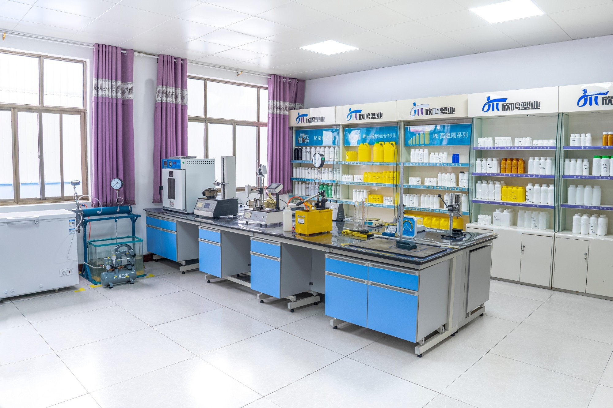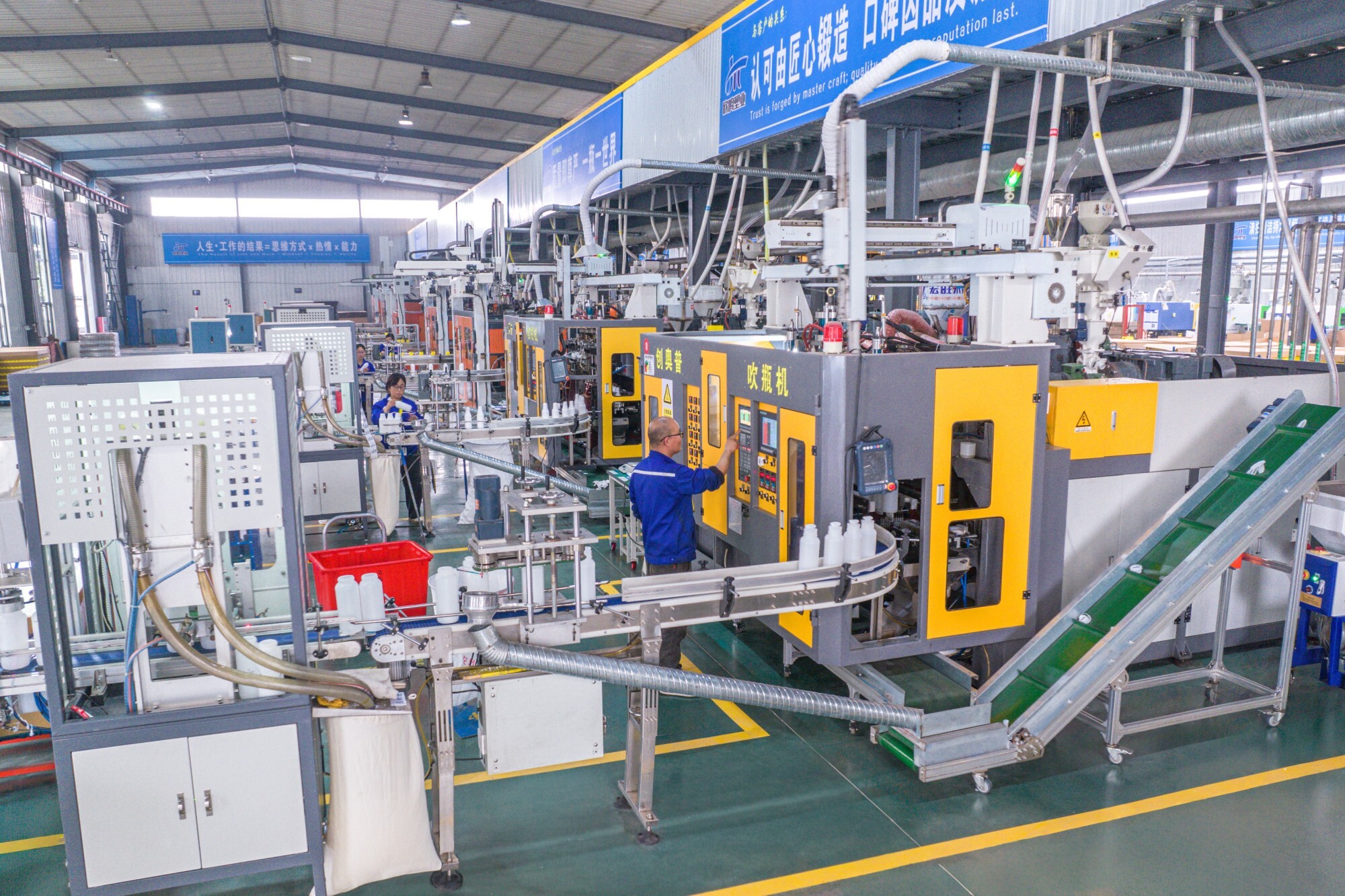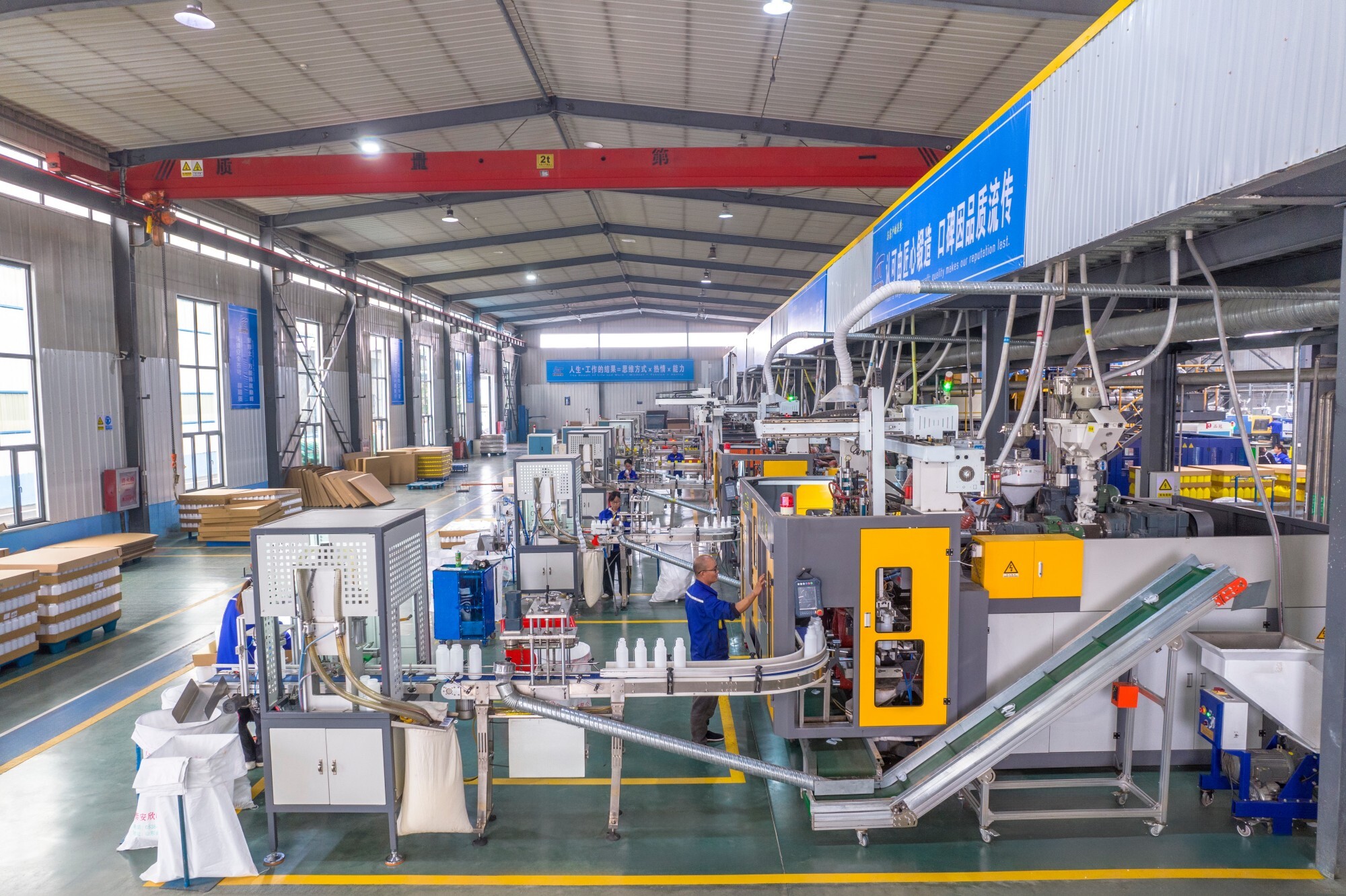 Taian Xinming: 16 fully automated high-barrier bottle production lines and 12 bottle cap production lines, with an annual output of 100 million PE/high-barrier bottles (50ml-1000ml), 2 million sets of PE/barrier containers (2L-20L), and 200 million various bottle caps. Jinan Xinming: 18 fully automated PET production lines, with an annual output of 200 million PET bottles and containers.